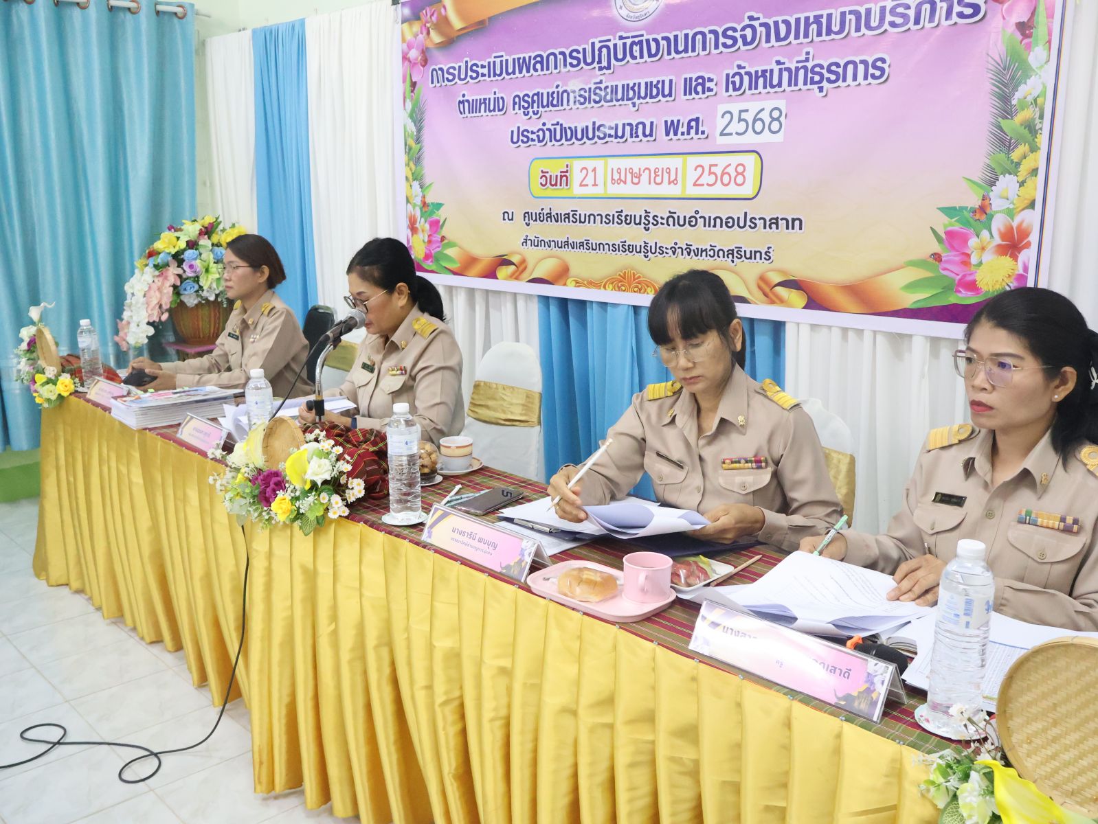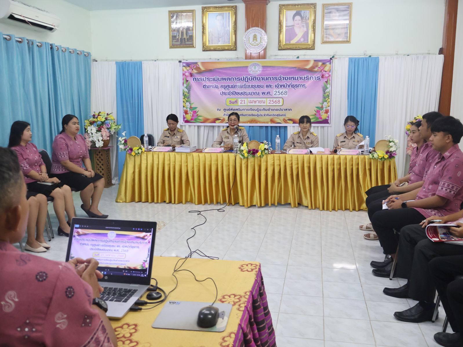 วันอังคารที่ 21 เมษายน 2568 นางอรสา สุภารี ผอ.สกร.ระดับอำเภอปราสาทประธานใน การประเมินผลการปฏิบัติงานการจ้างเหมาบริการตำแหน่งครูศูนย์การเรียนชุมชนและเจ้าหน้าที่ธุรการ สังกัด สกร.ระดับอำเภอปราสาทประจำปีงบประมาณ 2568 (ครั้งที่ 1 ) ระหว่างวันที่ 1 ตุลาคม 2567 ถึง 31 มีนาคม 2568 ณ ห้องประชุม สกร.ระดับอำเภอปราสาท จังหวัดสุรินทร์