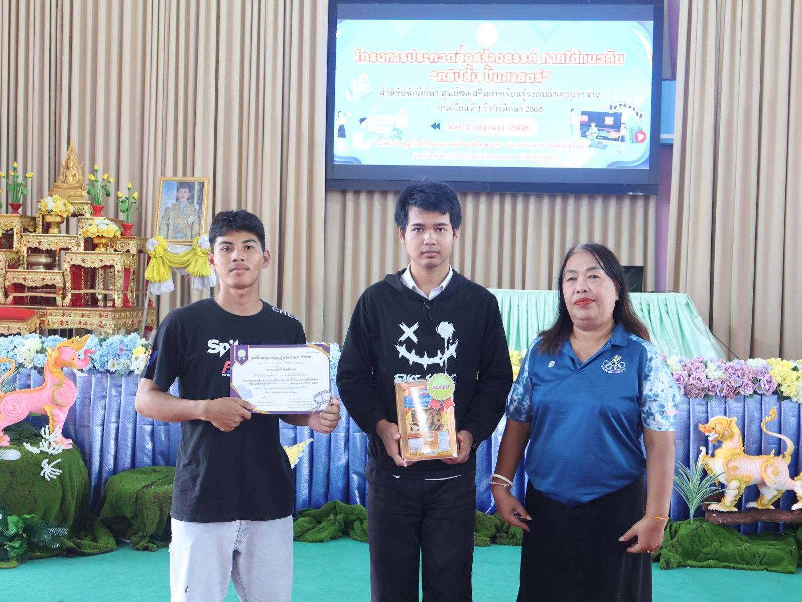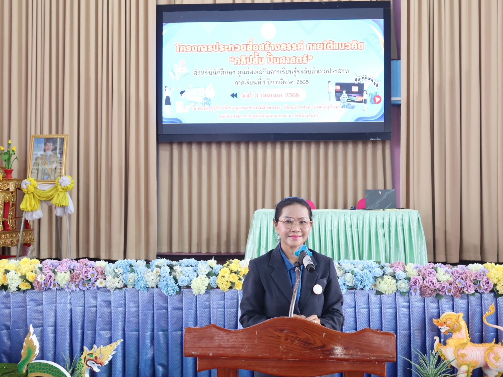 วันพุธที่ 3 กันยายน 2568 นางอรสา สุภารี ผู้อำนวยการศูนย์ส่งเสริมการเรียนรู้ระดับอำเภอปราสาท ได้มอบหมายให้ นางธีรตา อุตมาน ตำแหน่งครูชำนาญการเป็นประธานในโครงการประกวดสื่อสร้างสรรค์ ภายใต้แนวคิด “คลิปสั้น ปั้นศาสตร์” สำหรับนักศึกษา ศกร.ระดับอำเภอปราสาท ภาคเรียนที่ 1/2568 ณ หอประชุมโรงเรียนอนุบาลปราสาทศึกษาคาร อำเภอปราสาท จังหวัดสุรินทร์